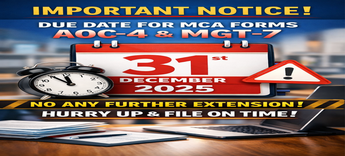 Adv. ROSHAN THAKUR Dec 18, 2025 Tax Due Dates of AOC-4 and MGT-7 of Financial Year 2024-2025 MCA confirm that there shall be no further extension. Late date is 31-12-25 for filed after this date shall have additional fees of 100 per day Fees calculated from 29-10-25 for AOC-4 and 29-11-25 for MGST -7 (provided AGM date is 30-09-25)Need any Professional advice reach to HITAXSERVICES Read More